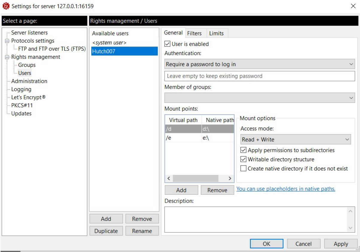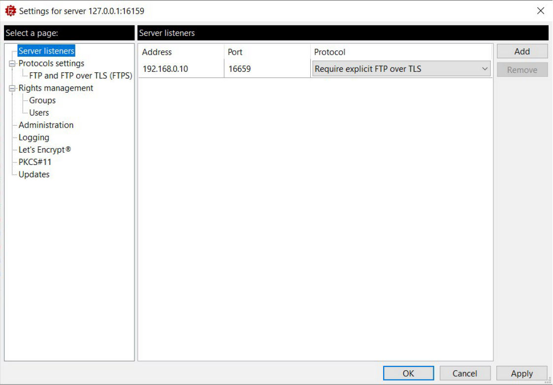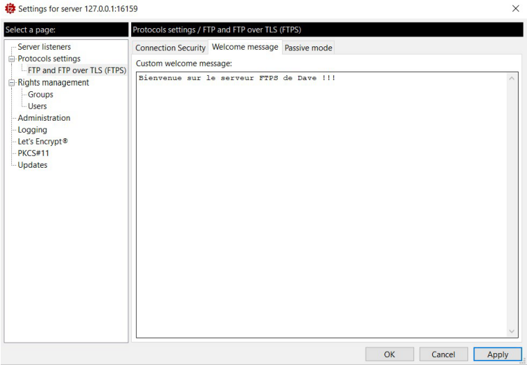 👉 Remplacer cette fois 127.0.0.1 par l'adresse ip v4 publique ou est hébergé le serveur FTPS