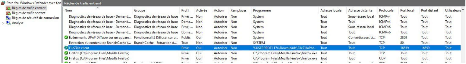 netsh advfirewall firewall add rule name="FTP FileZilla" dir=in action=allow protocol=TCP localport=16659