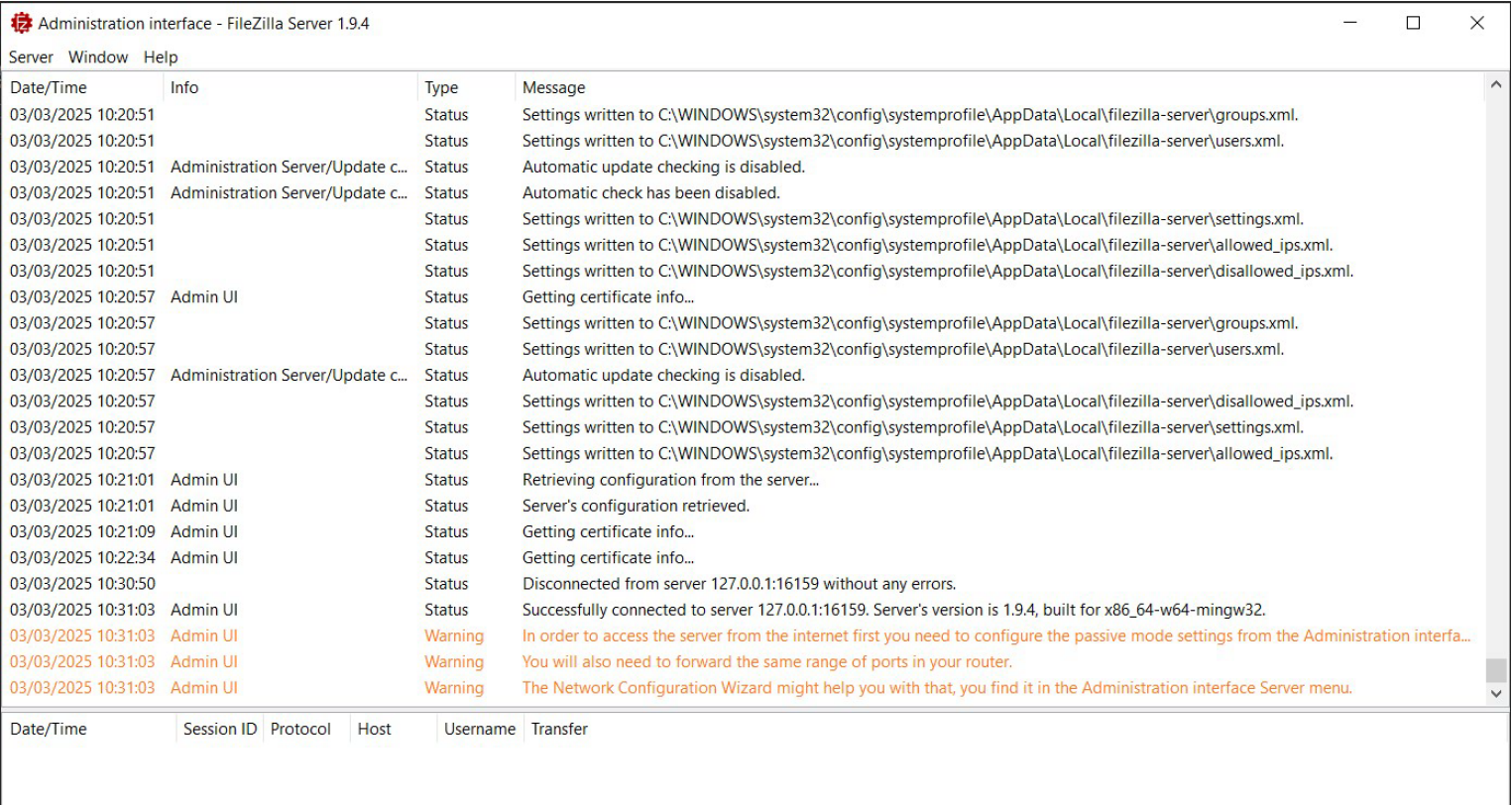 =>Rajouter une règle d’autorisation côté serveur FTPS.