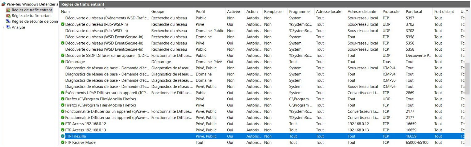 =>Rajouter une règle pour la plage de ports passifs (nécessaire depuis une connection extérieur au serveur FTPS)